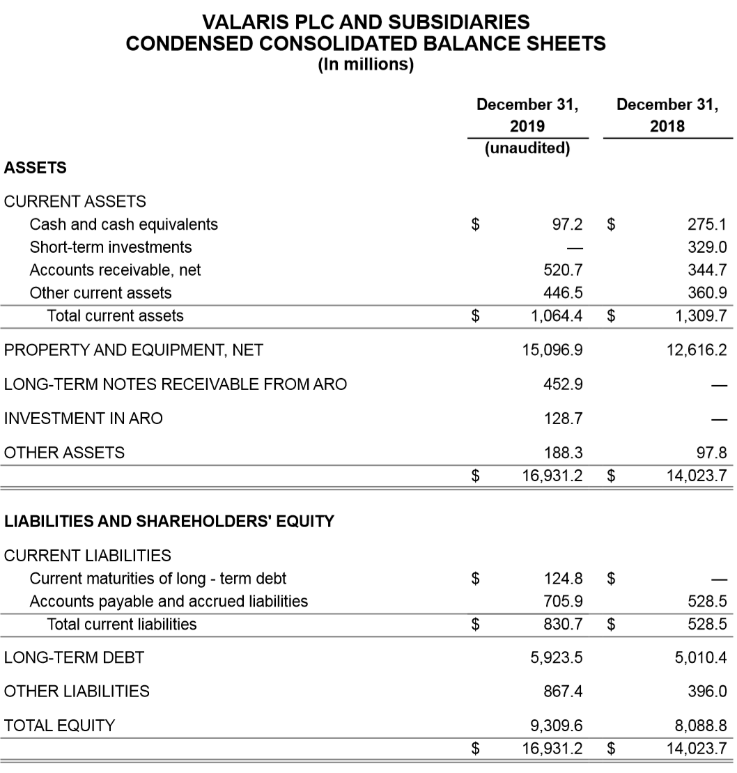 Burke concluded, “We also enjoyed commercial success, signing new contracts that added $1.8 billion to our contracted revenue backlog during the year, reflecting the success of our team's efforts to win new work for our rigs in improving, albeit still challenging, market conditions. We have carried this contracting momentum into 2020 with the addition of incremental backlog and we are in advanced discussions with customers for several new contracts. While our diverse, high-quality modern rig fleet and technical expertise position us well to continue adding future backlog, we expect to report losses and have negative cash flows during 2020 despite gradual improvement in utilization and average day rates for Valaris' fleet.”